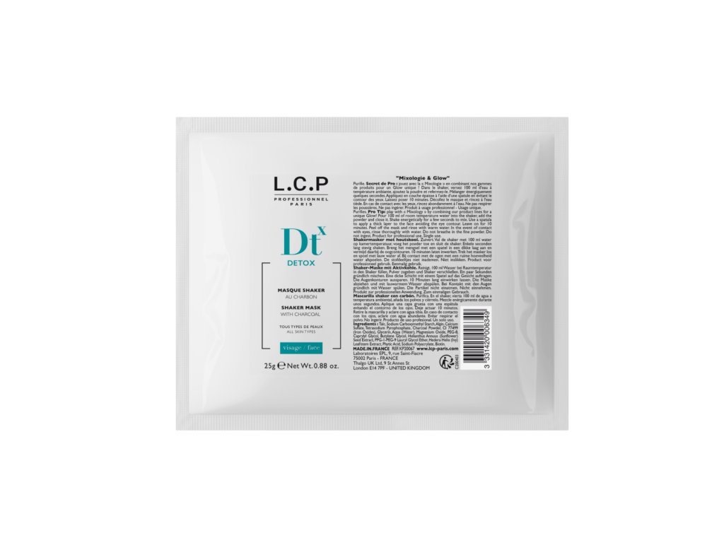 Použitie: Nalejte 100 ml vody izbovej teploty do shakera, vysypte do neho celý obsah vrecka a energicky pretrepte, kým sa maska nerozmieša. Špachtľou aplikujte masku na tvár vo vrstve cca 3 mm silnej, vynechajte očné okolie. Masku nechajte pôsobiť cca 10 minút. Potom masku zlúpnite a zvyšky odstráňte vodou. V prípade kontaktu s očami ich vypláchnite vodou. Prášok nevdychujte, nepožívajte. Maska je určená na jednorazové použitie. Je určená pre profesionálov.