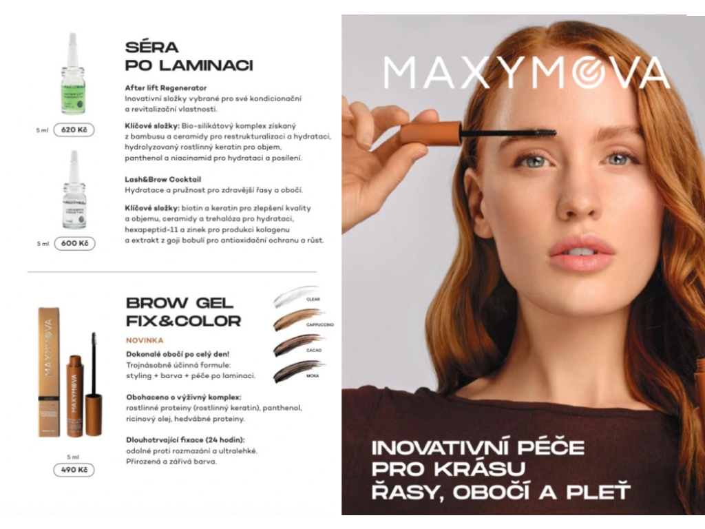 MAXYMOVA je talianska značka založená v roku 2021, ktorá sa počas troch rokov rozšírila do viac ako 50 krajín sveta. Vyniká luxusným dizajnom, nízkym zápachom prípravkov na lamináciu obočia a lash lifting, ekologickým prístupom a tiež inovatívnym radom produktov pre SPA lash lifting.