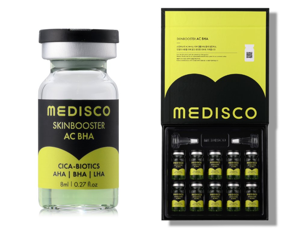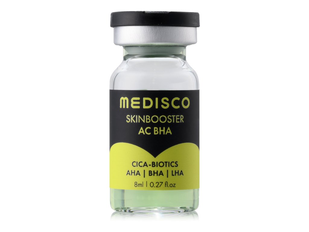 Medisco Skinbooster AC BHA je profesionálna ampulka na microneedling zameraná na problematickú, mastnú alebo upchatými pórmi zaťaženú pleť. Kombinuje exfoliačné kyseliny AHA, BHA a LHA, ktoré pomáhajú odstraňovať odumreté kožné bunky, regulovať nadmerný maz a čistiť póry.