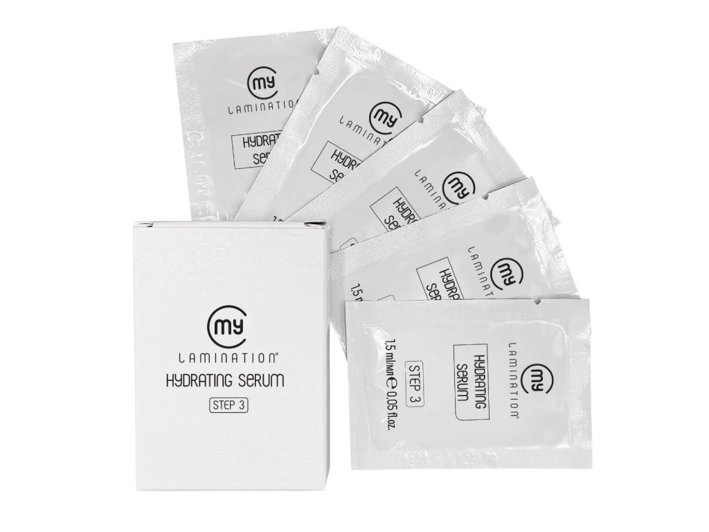 Hydrating serum+ sa musí použiť vždy na záver každej laminácie a lash liftingu s My Lamination, pretože ukončuje chemické procesy všetkých prípravkov použitých počas ošetrenia. Je určené na obočie a na riasy, ktoré vyživuje, čistí a uvoľňuje zo silikónovej natáčky. Obsahuje množstvo výživných a ošetrujúcich látok ako ricínový olej, žihľavu, slez, ibištekový kvet, aloe vera, glycerín, kolagén, panthenol, hydrolyzovaný hodváb a keratín. To všetko riasy a chĺpky posilňuje, hydratuje a zjemňuje. Sérum uzatvára kutikulu rias/chĺpkov a pomáha odstrániť z nich zvyšky laminačných prípravkov.