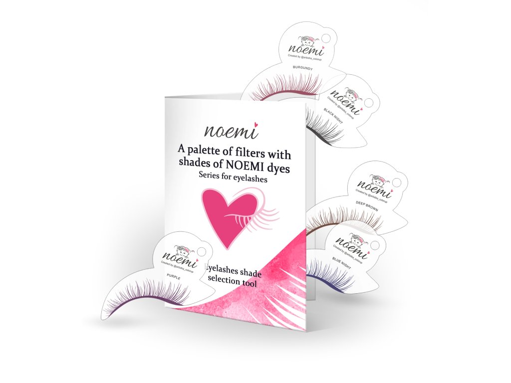 Vďaka šablónam na mihalnice v odtieňoch hybridných farieb Noemi Lash Dye veľmi jednoducho vyberiete pre svoje zákazníčky perfektnú farbu. Zároveň im elegantne ukážete, ako bude vyzerať presne na nich. Šablóny stačí len priložiť nad oko klientky.